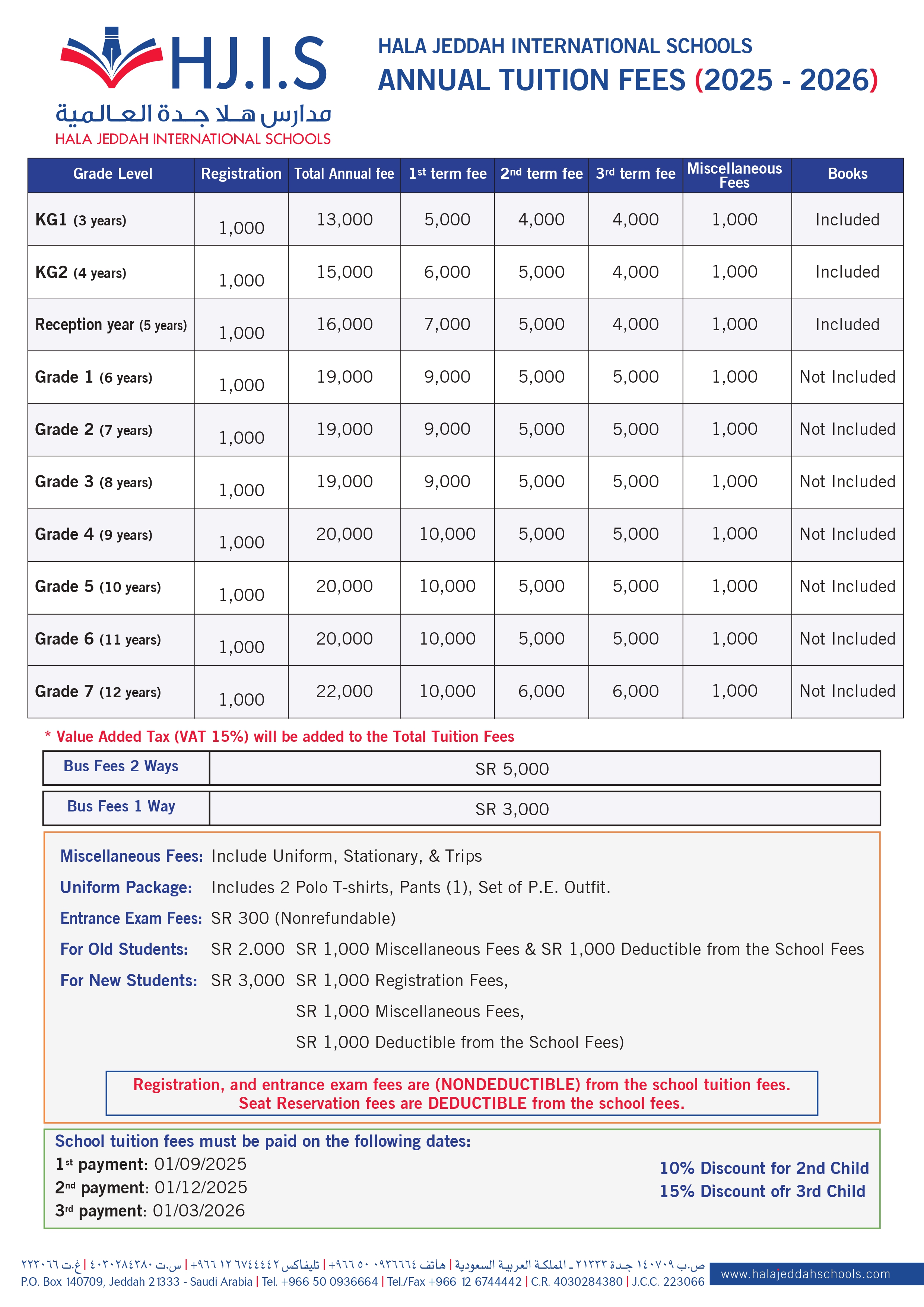 تقدم المدرسة خدمة نقل وتوصيل الطلاب من المنزل حتى المدرسة والعكس لضمان سلامتهم